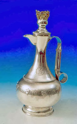 A garrafa de prata é utilizado para a libação do vinho. O vinho é